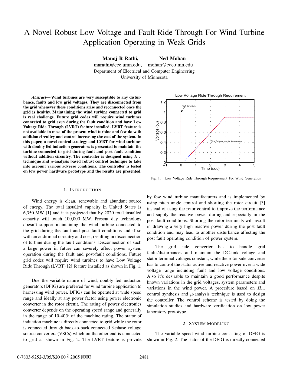 原文标题 A Novel Robust Low Voltage and Fault Ride Through For Wind Turbine Application Operating in Weak Grid