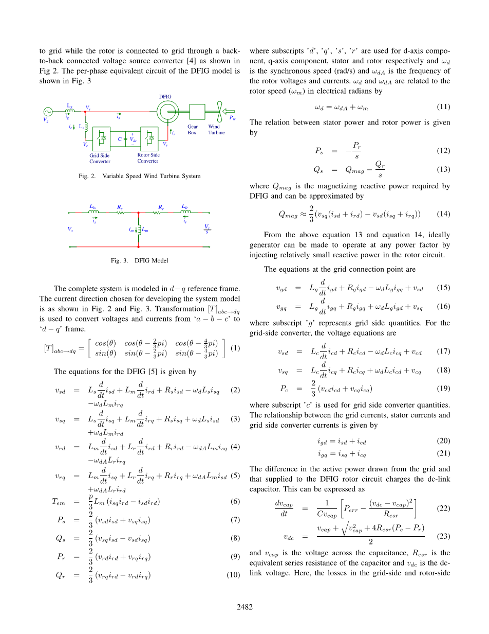 完整的系统在d-q参考坐标系建模。选择如图2和图3所示的方向作为开发系统模型的当前方向。的变换用于将电压和电流从lsquo;a-b-crsquo;转换成lsquo;d-qrsquo;坐标轴上
