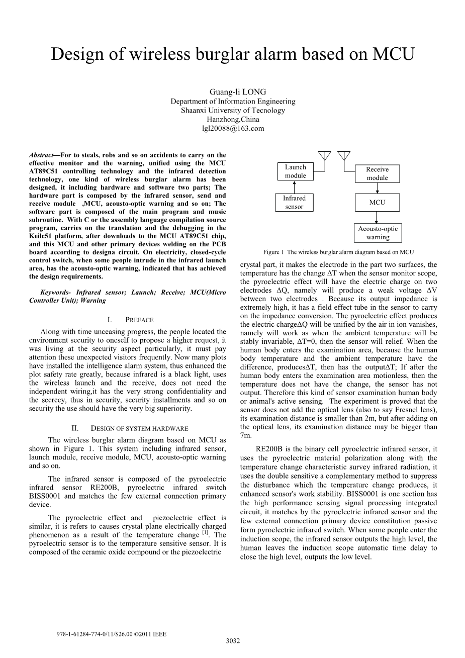 [5] Zheng-jiang WU,“ MCU control infrared burglar alarm”. Electron