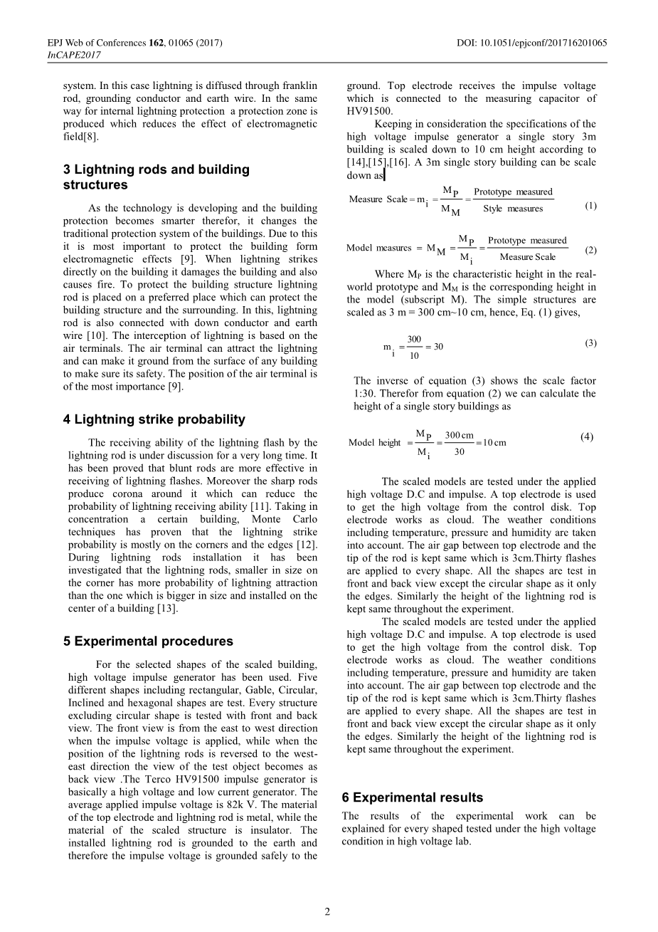 对于高电压技术研究人员来说,建筑物面临着雷击的威胁,建筑物防雷是一个极为重要的问题。本论文根据研究五种不同的建筑物外形接收雷电闪击发生时的模式不同,分析了雷电脉冲的均匀分布。为保证实验系统的稳定性,对所有建筑物模型的前后两面都进行了30次模拟雷电脉冲,这样做保证了所进行实验的平衡性。如果安装的接闪杆位置正确,不同形状的外形比例合适,那么即便位置改变了,该系统还是能正常防雷。所有实验均在马来西亚的STP条件下进行。实验中的不同形状均是指宏观尺度上的,并且除了形状模型以外保证其他变量不变,从正面进行的实验所得结果与从反面得到的结果相同,这表明电压在每一个接闪杆上是均匀分布的。雷电压的均匀分布理论也许会使一些专家学者、政府承包商以及高电压工程师们研发出一套综合的建筑物防雷系统。