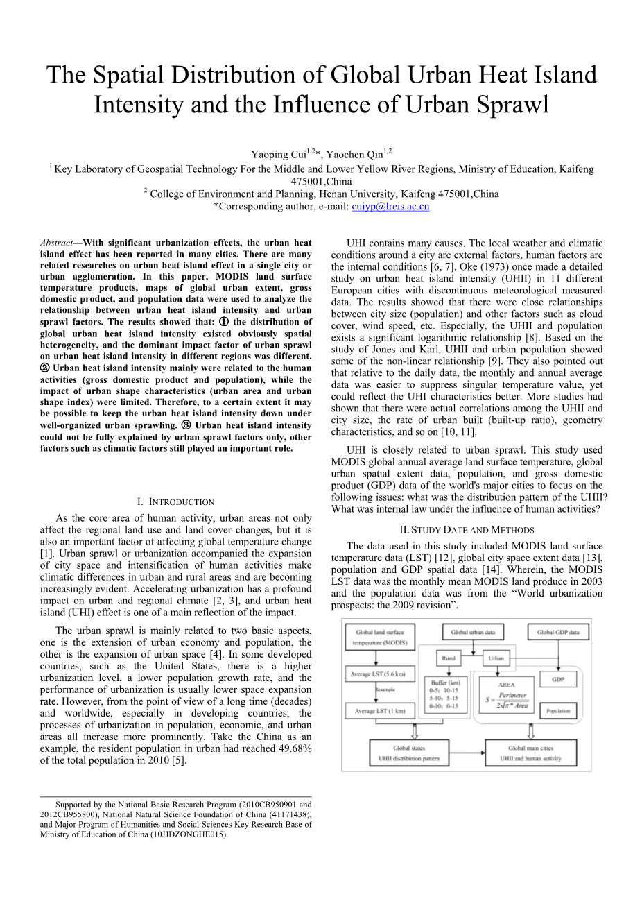 热岛与城市的扩张密切相关。本研究使用MODIS全球年平均地表温度数据和全球城市空间数据,人口数据和全球主要城市国内生产总值(GDP)数据,并关注以下问题:UHII的分布格局是什么?人类活动影响下的内部规律是什么?