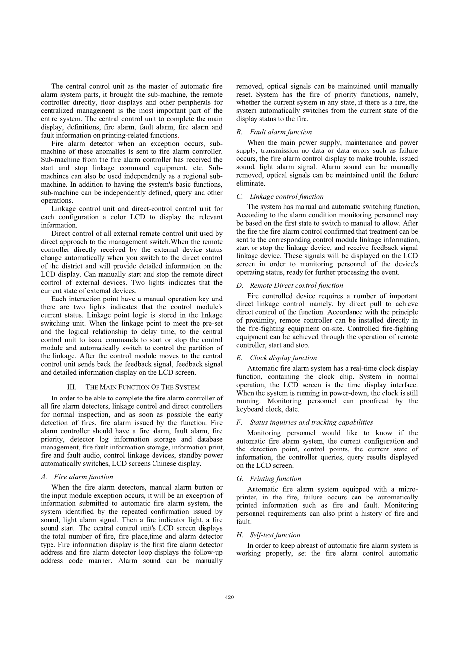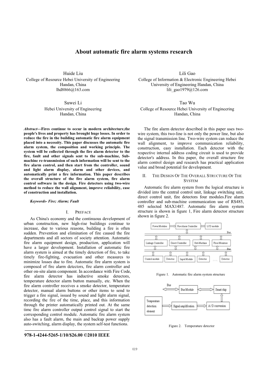 关于火灾自动报警系统的研究外文翻译资料