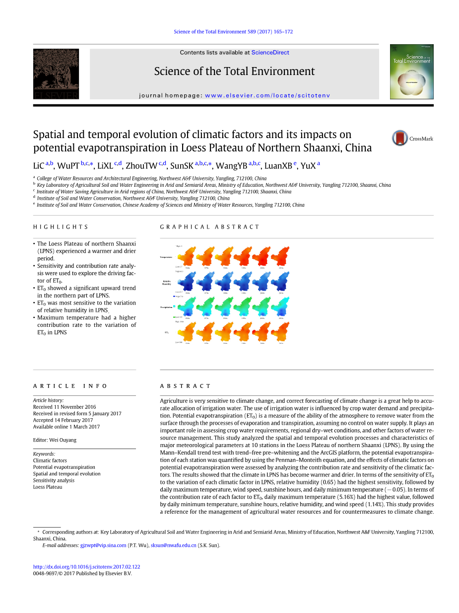 b Key Laboratory of Agricultural Soil and Water Engineering in Arid and Semiarid Areas, Ministry of Education, Northwest Aamp;F University, Yangling 712100, Shaanxi, China