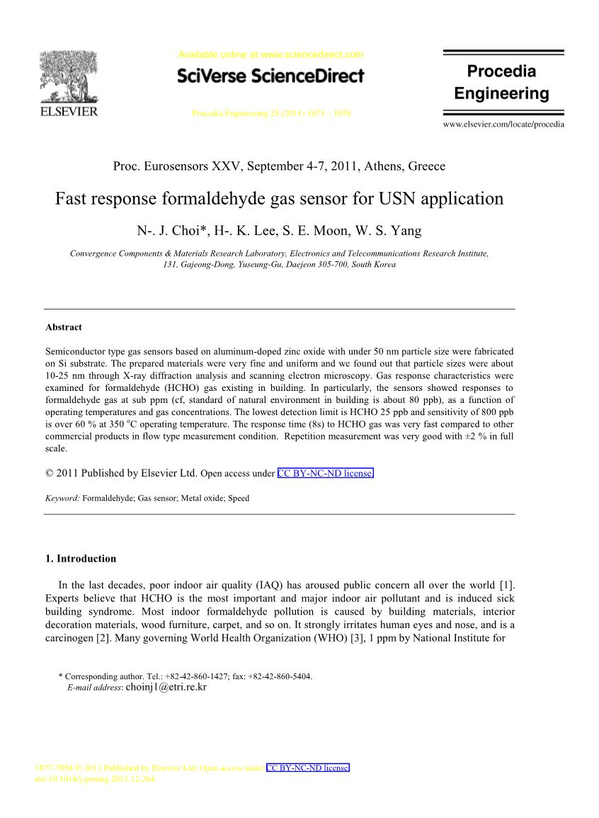在过去的几十年里,室内空气质量差(IAQ)引起了全世界的关注[1]。专家认为,HCHO是最重要的室内空气污染物,是诱发疾病的建筑综合征。大多数室内甲醛污染是由建筑材料、室内装饰材料、木质家具、地毯等造成的。它强烈刺激人的眼睛和鼻子,是一种致癌物质[2]。许多管理世界卫生组织(WHO) [3], 1 ppm由国家研究所。