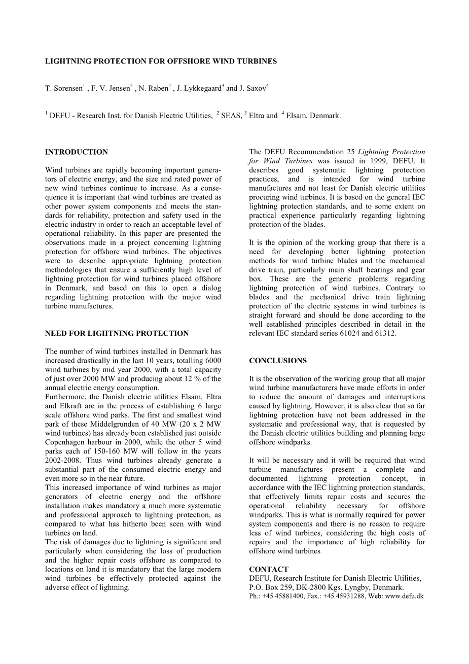 [3] DEFU Report 438, 2000, 'Lightning protection for offshore wind turbines' (in Danish), DEFU.