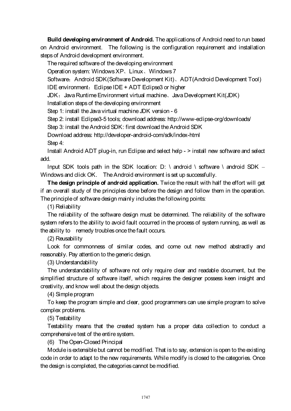 IDE环境:Eclipse IDE ADT Eclipse3或更高版本