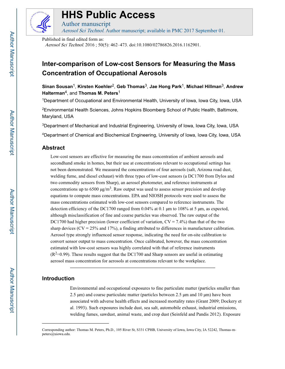 Sinan Sousan , Kirsten Koehler , Geb Thomas , Jae Hong Park , Michael Hillman , AndrewHalterman , and Thomas M. Peters