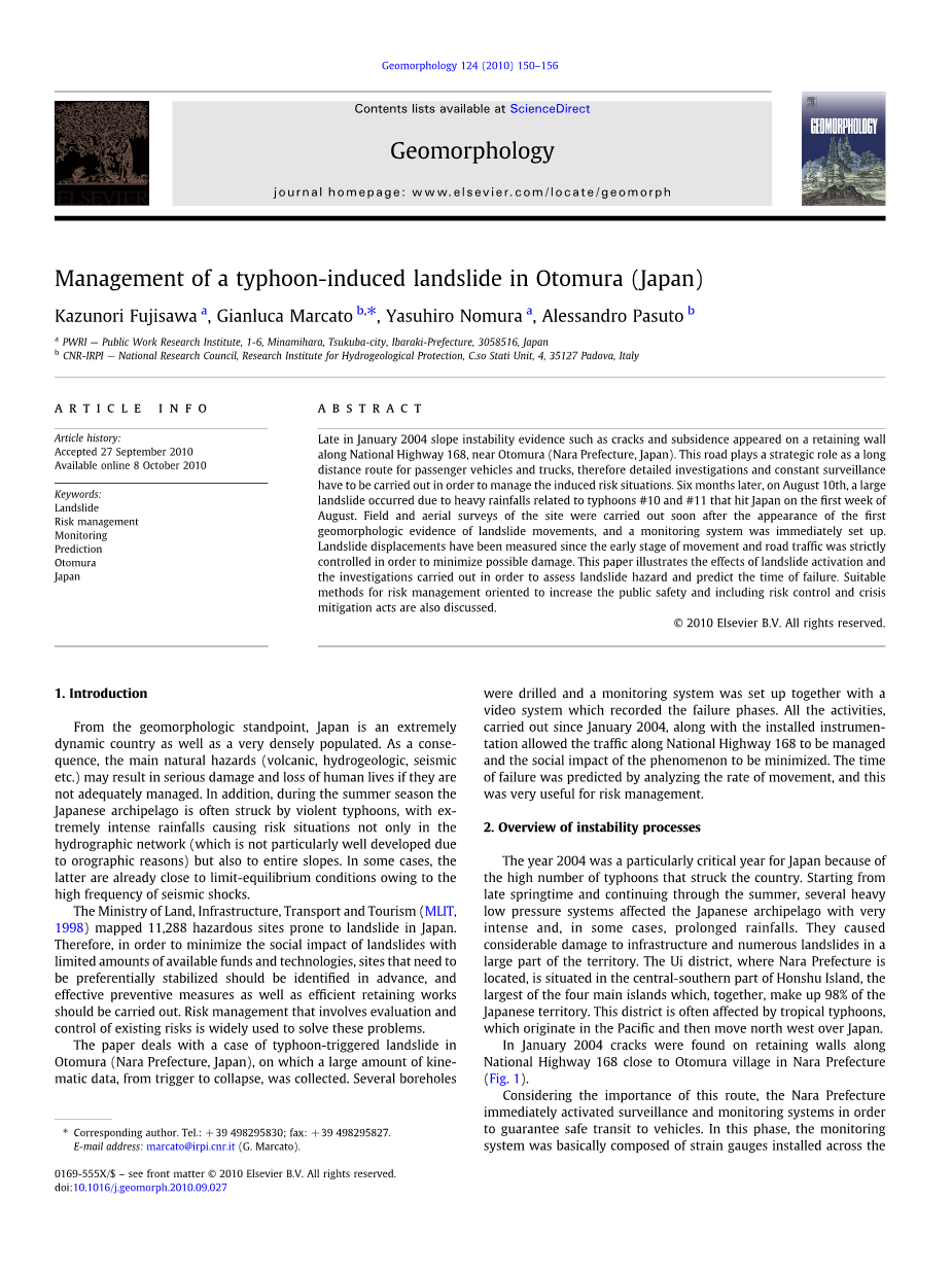 Kazunori Fujisawaa ,Gianluca Marcatob, Yasuhiro Nomuraa , Alessandro Pasutob