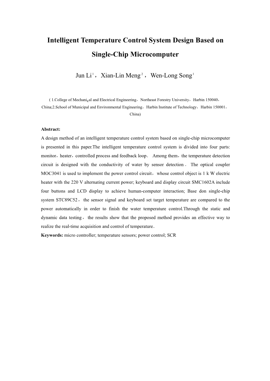 关键词:微控制器;温度传感器;功率控制;SCR