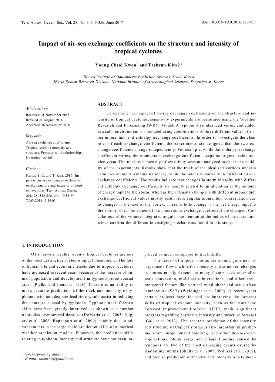 第二部分描述了修改CD和CH的实验设计和方法。结果在第三节中给出,其中基本场和风暴结构与灵敏度结果相关。此外,还解释了与CD和CH有关的两种不同风暴强度变化机制,并描述了风暴对这些系数的相关结构影响,最后第四部分提供了一些总结和结论。