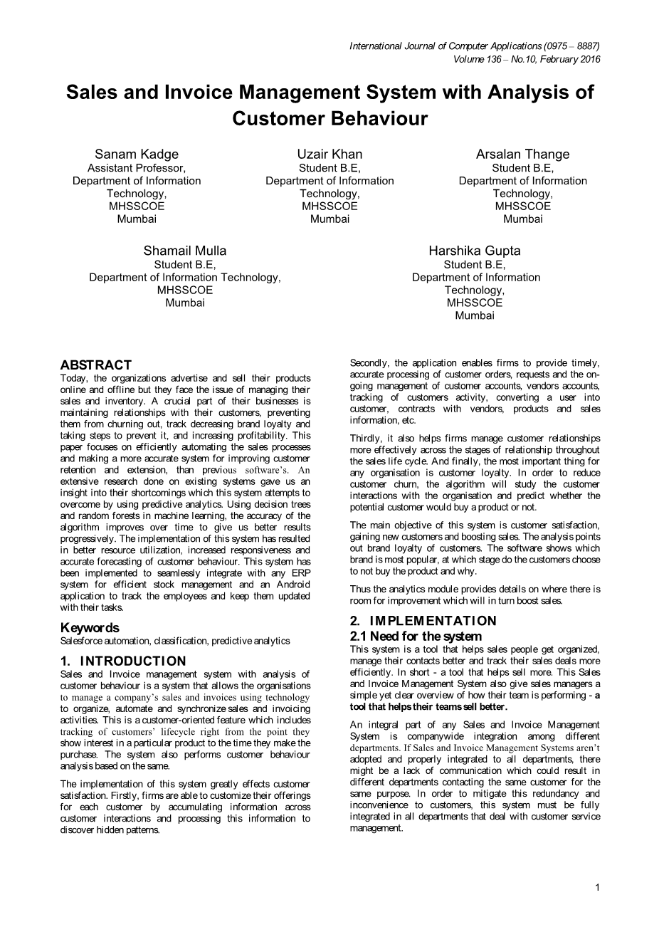 - 该系统克服了销售管理系统所面临的挑战,满足了在发票管理领域对现有应用不满意的组织需求。