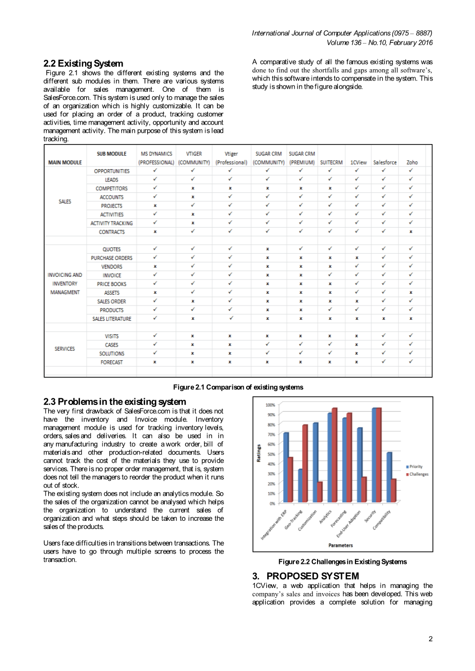 图2.1显示了不同的现有系统和不同的子模块。有各种系统可供销售管理。其中一个是Salesforce.com。该系统仅用于管理一个高度可定制的组织的销售。它可以用来放置产品的订单,跟踪客户活动,时间管理活动,机会和帐户管理活动。该系统的主要目的是跟踪。