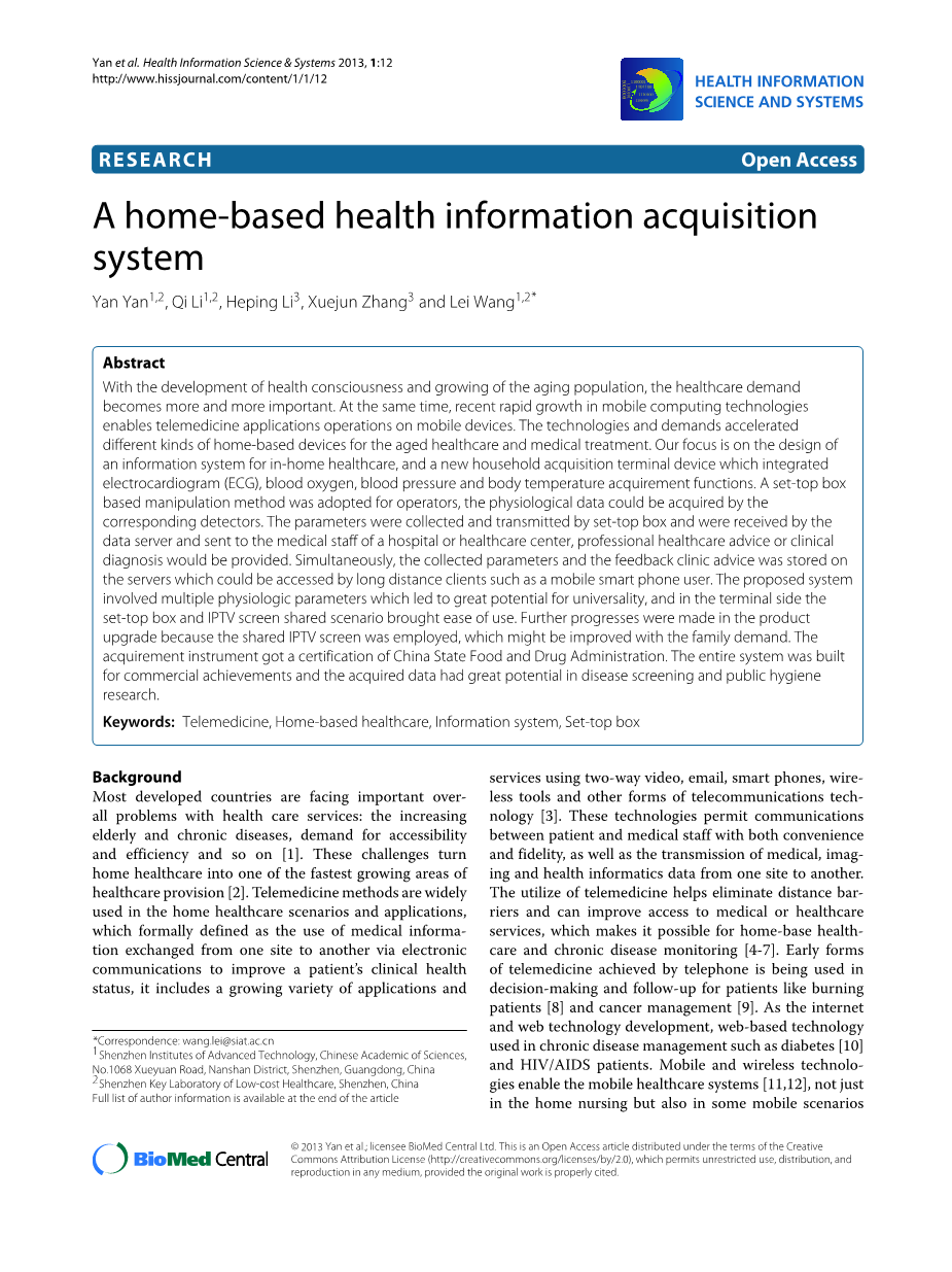 Yan Yan1,2, Qi Li1,2, Heping Li3, Xuejun Zhang3 and Lei Wang1,2*