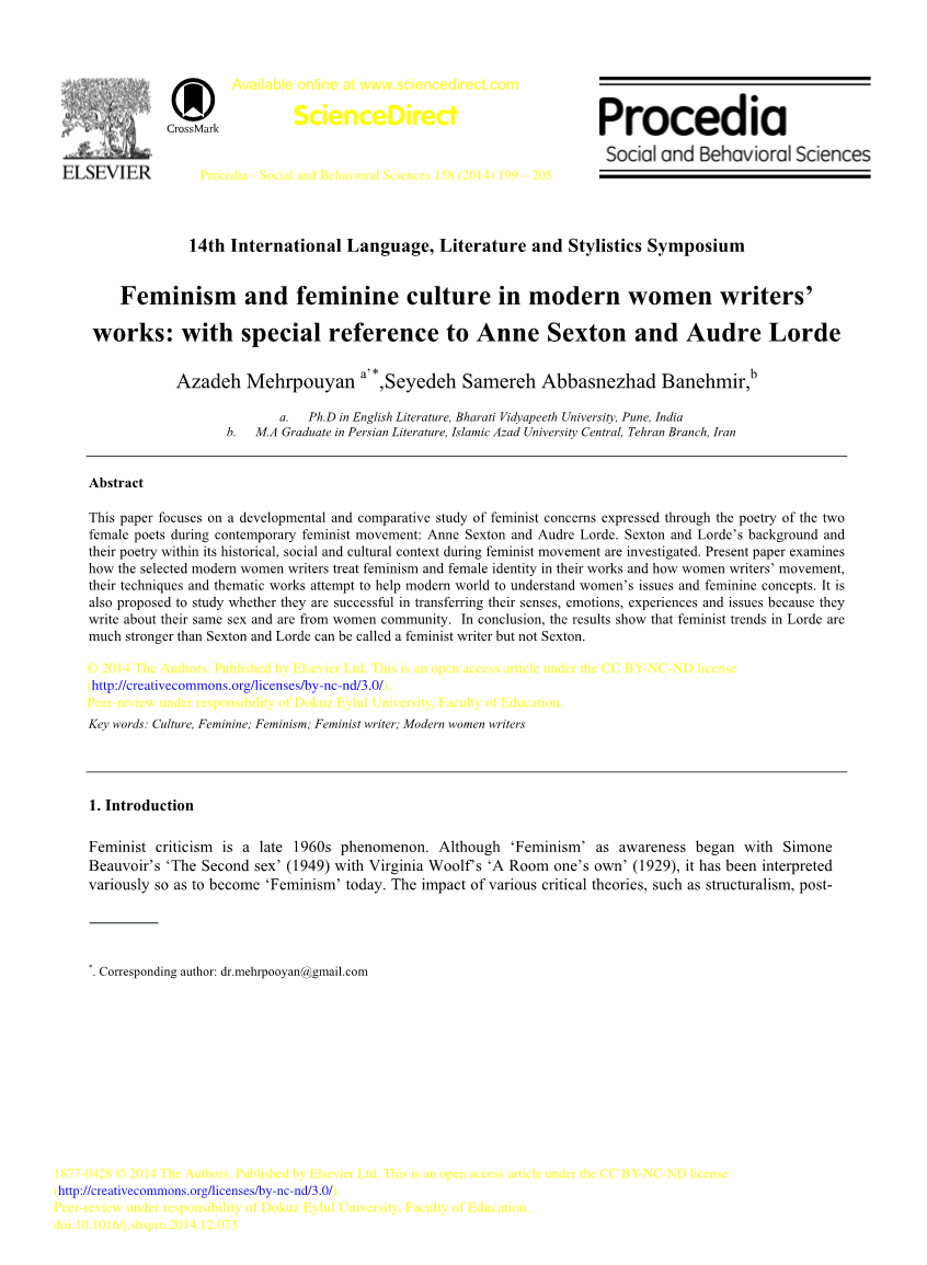 关键词:文化、女性、女性主义、女性主义作家、现代女性作家