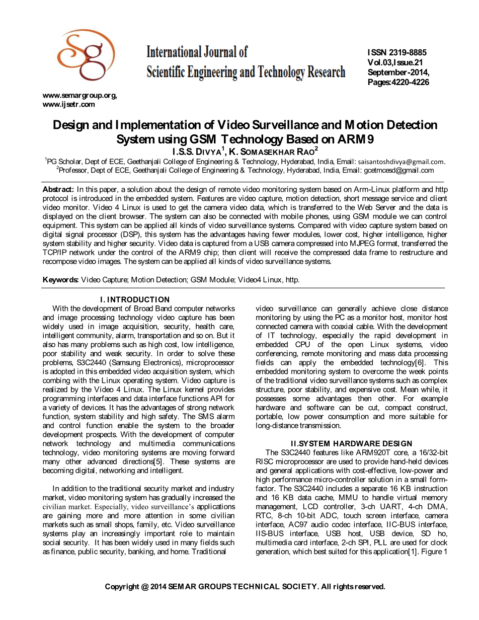 关键词:视频采集;运动检测; GSM 模块; VIDEO4 的 Linux,HTTP。