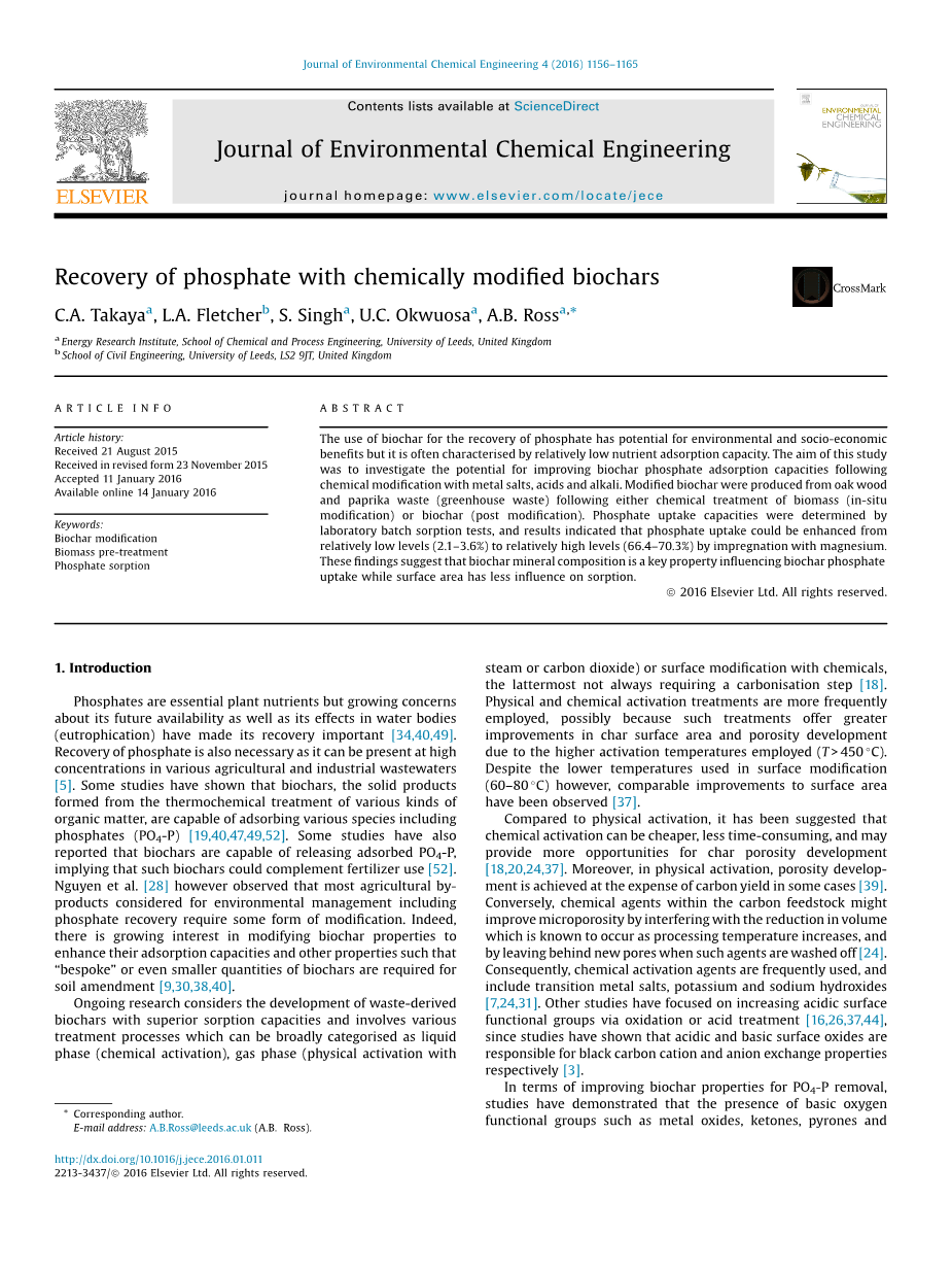 C.A. Takayaa , L.A. Fletcherb , S. Singha , U.C. Okwuosaa , A.B. Rossa,
