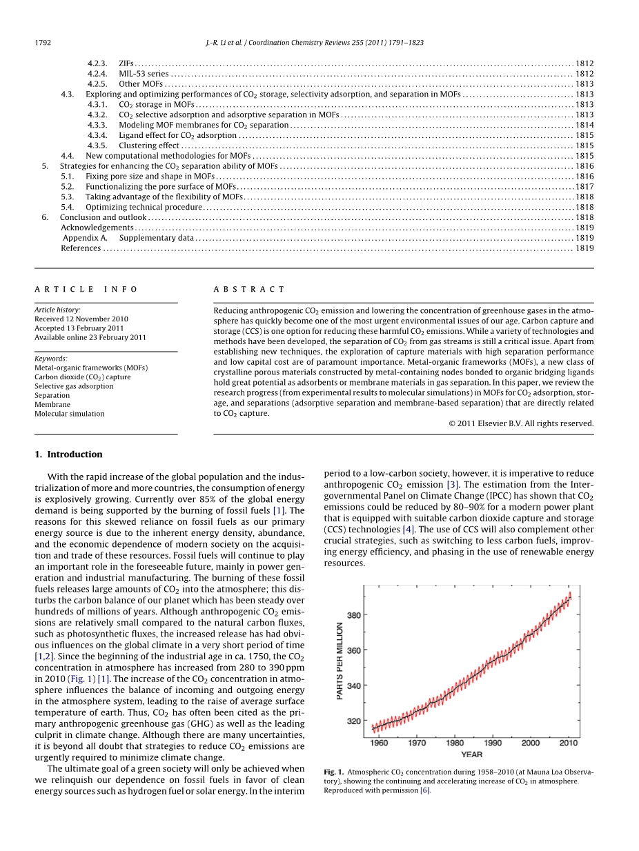 2.4.1 MOFs对于二氧化碳分离的突破性研究