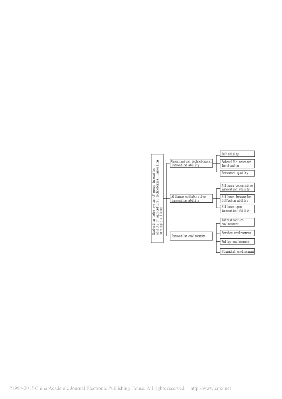 农业技术创新战略联盟农业技术创新能力的影响因素,创新战略联盟可以分为三个类别,即组织技术创新能力,合作创新能力与创新环境。在本文中,集团创新评价指标体系农业技术创新战略联盟的能力是建立在三个影响因素的基础上。