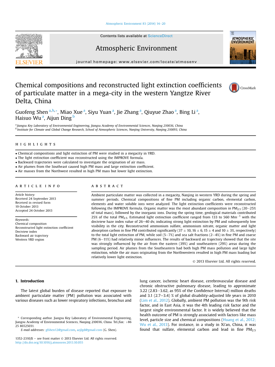 Guofeng Shen a, b, *, Miao Xue a, Siyu Yuan a, Jie Zhang a, Qiuyue Zhao a, Bing Li a, Haisuo Wu a, Aijun Ding b
