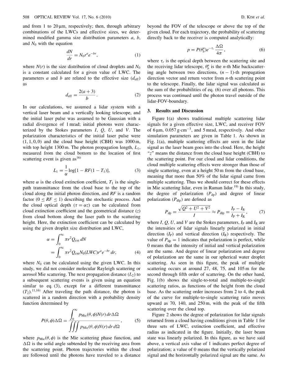 在当前结果与文献14和现在所做的实验轻微的差异是由于不同的尺度分布,不同的散射次数和不可比的激光雷达和云的参数,因为我们不了解ref14中的参数信息。