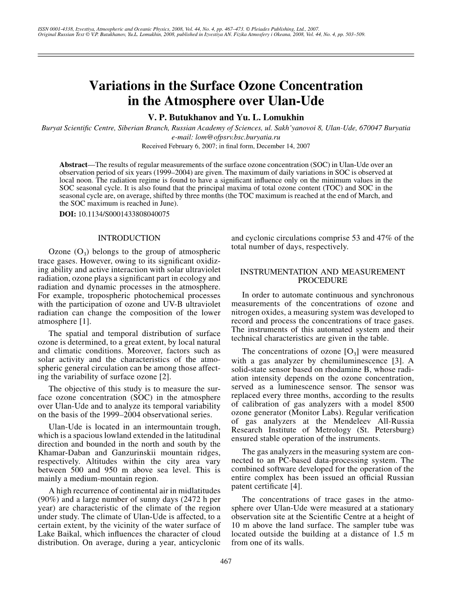 5. N. F. Elansky, M. A. Lokoshchenko, I. B. Belikov, et al.,“Variability of Trace Gases in the Atmospheric Surface Layer from Observations in the City of Moscow,” Izv.Akad. Nauk, Fiz. Atmos. Okeana 43, 246–259 (2007)[Izv., Atmos. Ocean. Phys. 43, 219–231 (2007)].