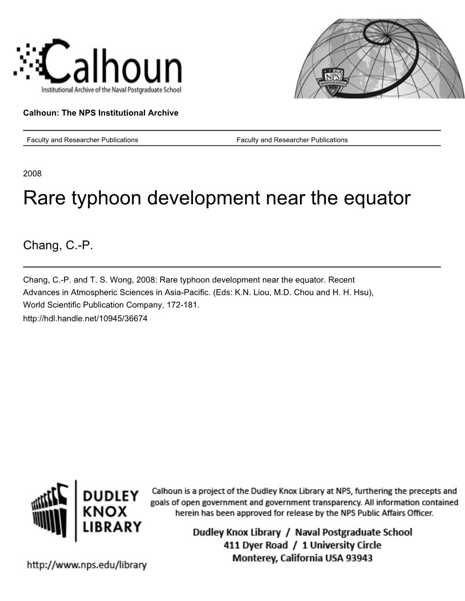 1、Department of Meteorology Naval Postgraduate School, Monterey, California, USA cpchang@nps.edu