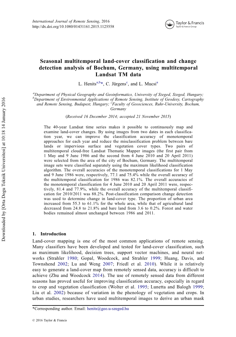 Department of Environmental Applications of Remote Sensing, Institute of Geodesy, Cartography and Remote Sensing, Budapest, Hungary; cFaculty of Geosciences, Ruhr-University, Bochum, Germany