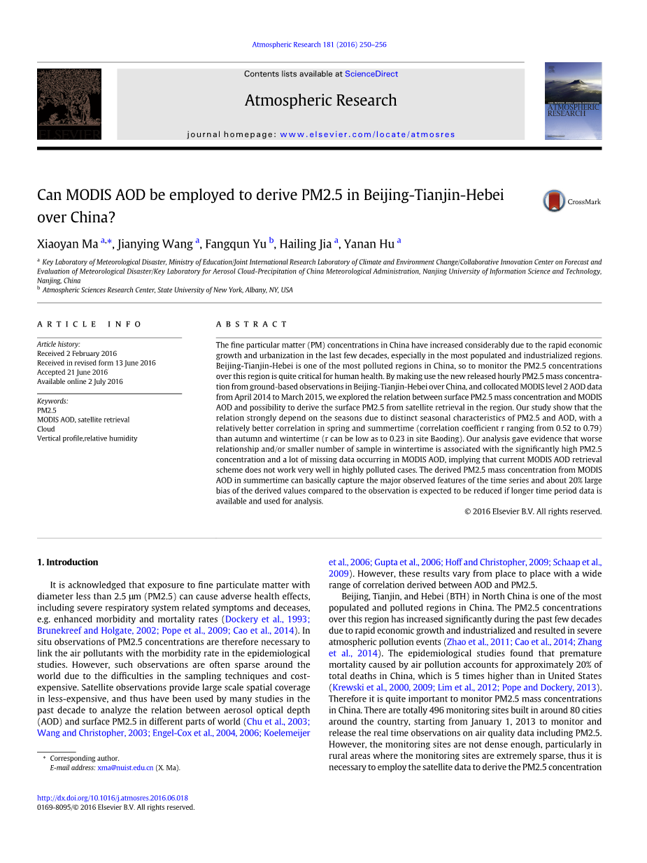 译文标题 是否可以使用MODIS AOD来获得中国北京、天津,河北的PM2.5?