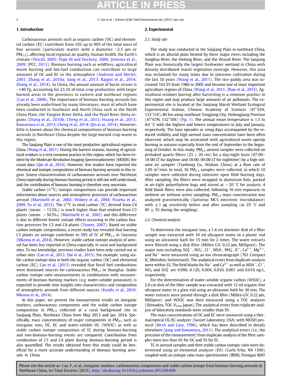 原文标题 Inorganic markers, carbonaceous components and stable carbon isotope from biomass burning aerosols in Northeast China