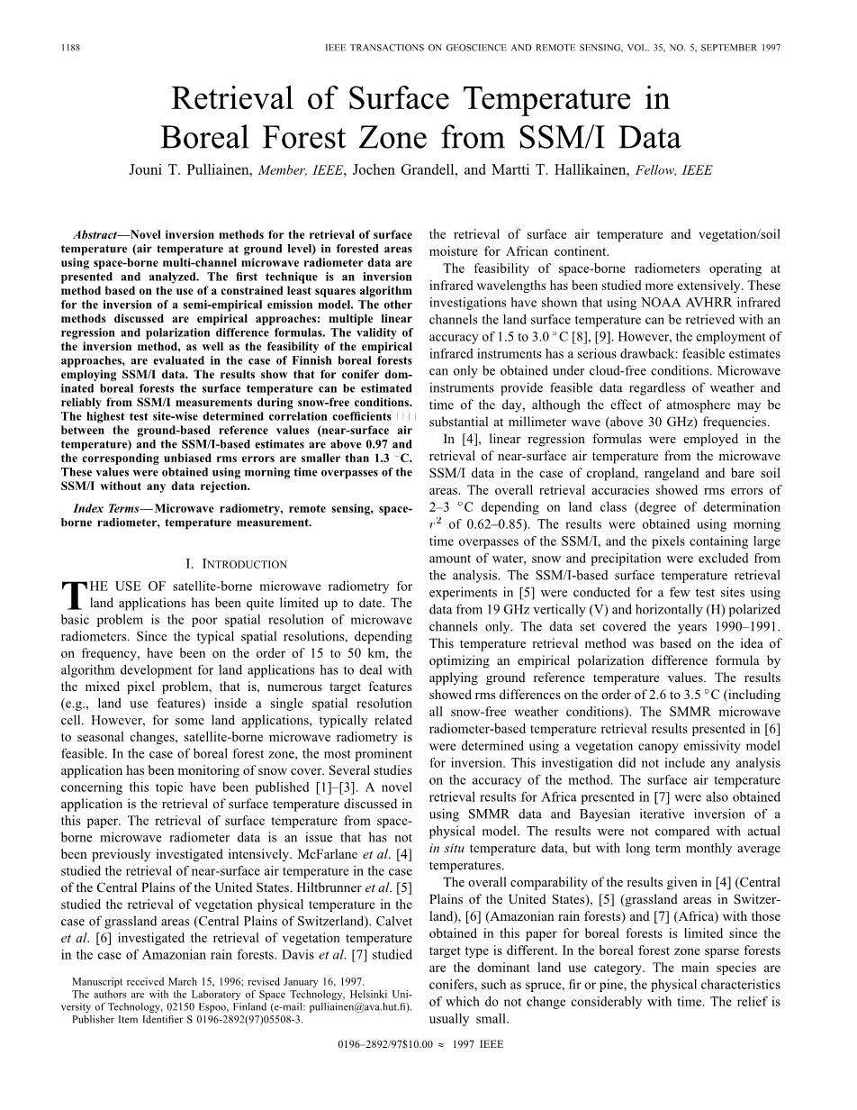Jouni T. Pulliainen, Member, IEEE, Jochen Grandell, and Martti T. Hallikainen, Fellow, IEEE