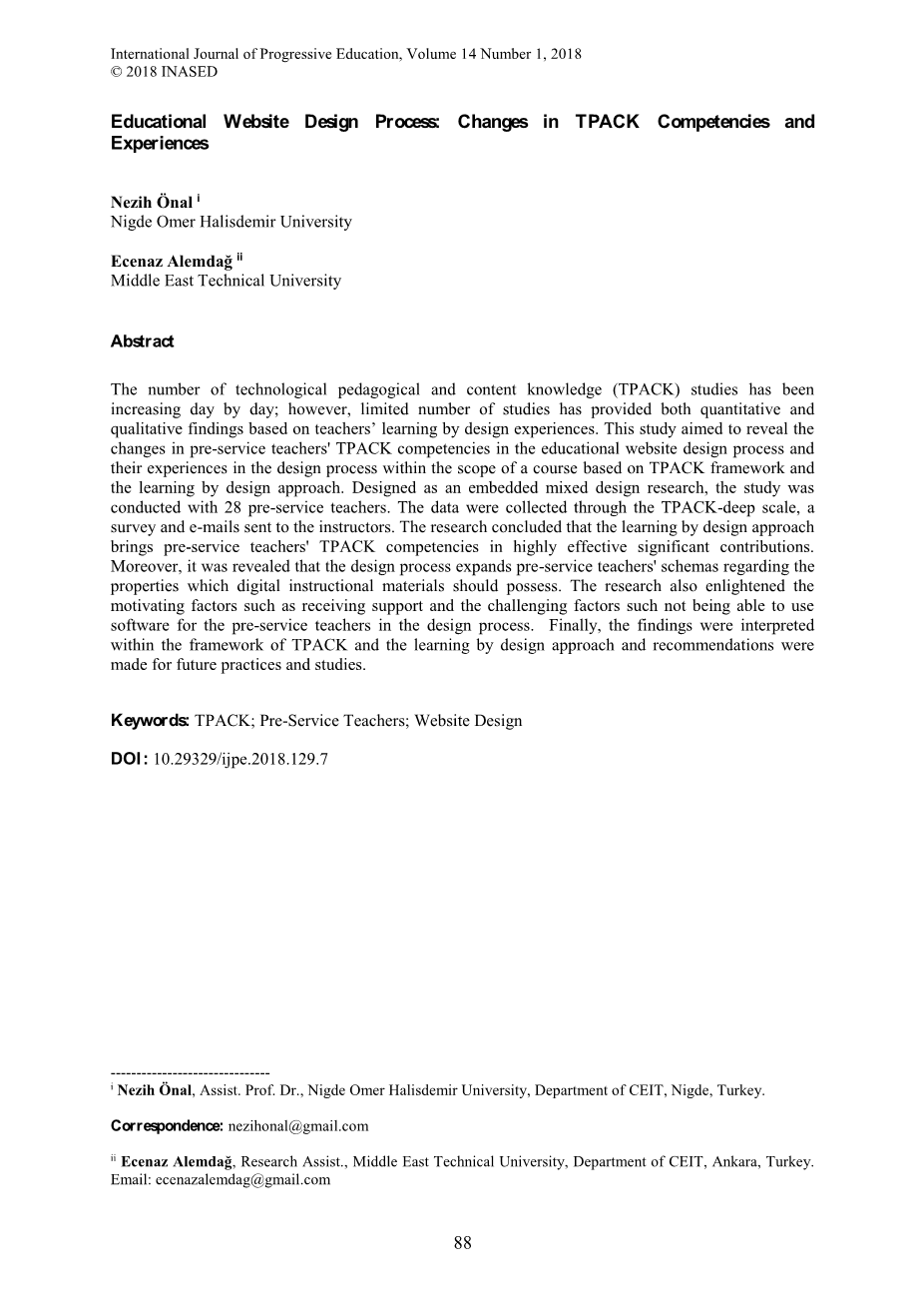 International Journal of Progressive Education, Volume 14 Number 1,2018copy;2018 INASED