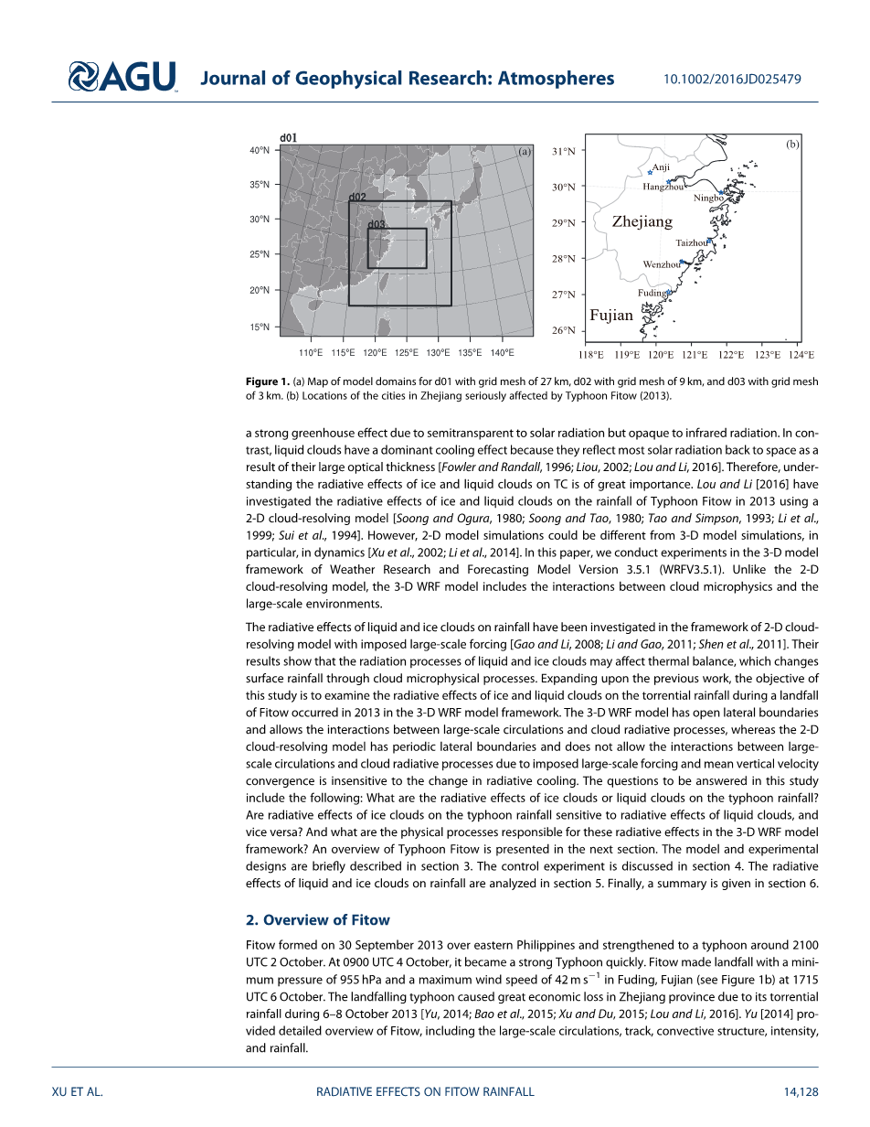 菲特形成于2013年9月30日在菲律宾东部和加强对各地2100 UTC 10月2日台风。 10月4日9点,它迅速成为一场强大的台风。 菲特登陆与955百帕的最小压力和在福鼎,福建42米/秒的最大风速(见图1b)在1715 UTC 10月6日。 由于2013年6月至10日的暴雨,这次登陆台风在浙江省造成了巨大的经济损失[Yu,2014; Bao et al.,2015; Xu and Du,2015; Lou and Li,2016]。 于[2014]提供的菲特详细概述,包括大型环流,路径,对流结构,强度和降雨量。
