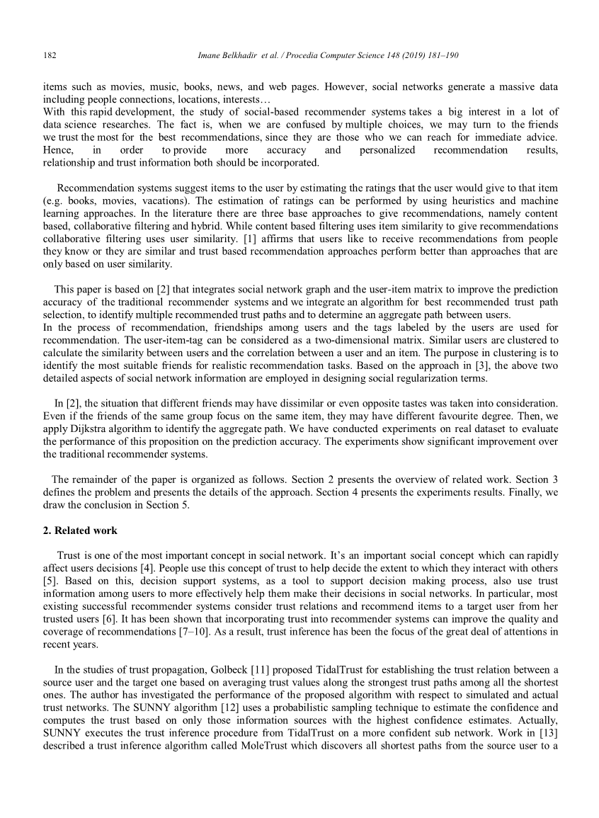 Hang等人[18]提出了一种信任路径选择方法,其中信仰被认为是最相关的值得信赖的服务。 在[13]中,提出了一种基于间接信任的机制来消除不值得信任的建议。 但是,尚未考虑建议的信任值。在上述方法中,尽管考虑了信任值,但它们不适用于确定在线社交网络中的可信决策。