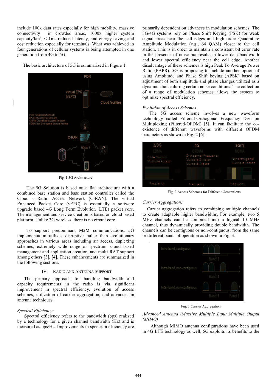 处理无线电中带宽和容量要求的主要方法是通过频谱效率的显着提高,接入方案的演进,载波聚合的利用以及天线技术的进步。