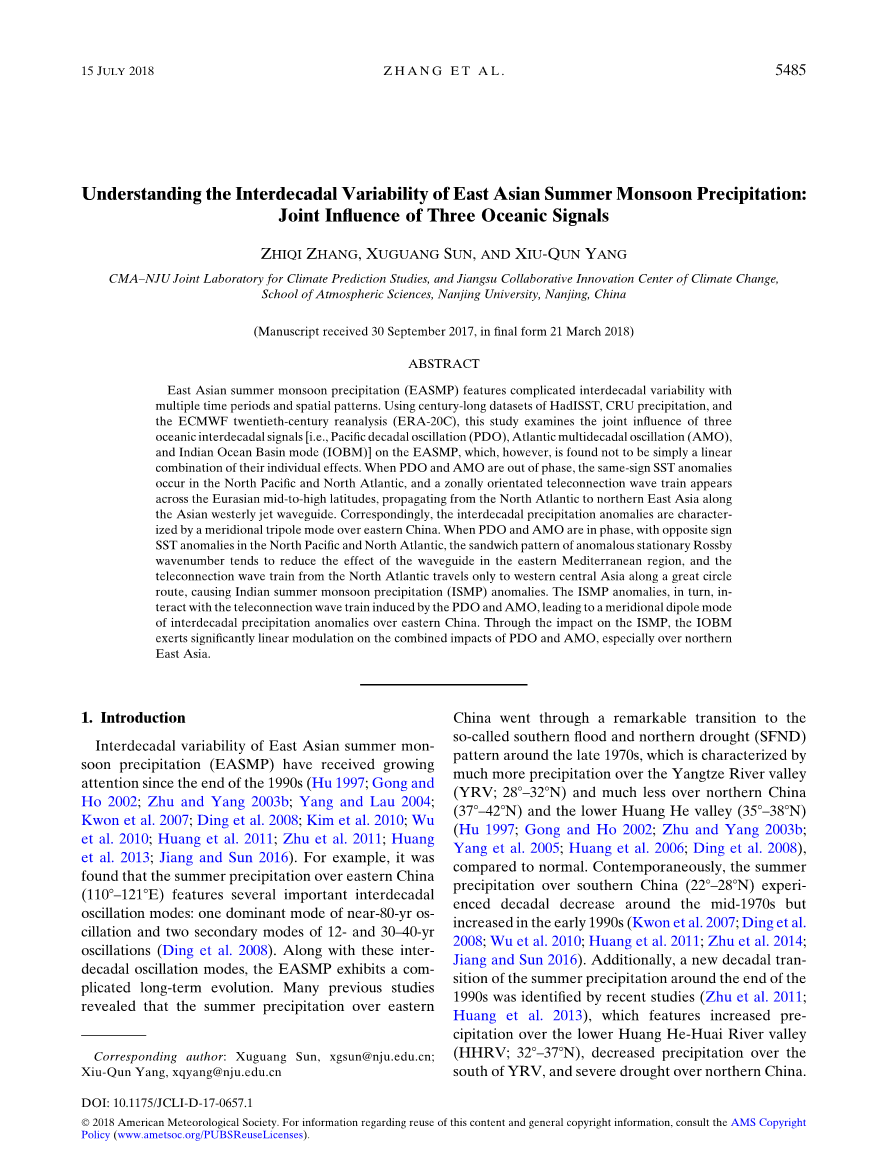 CMA–NJU Joint Laboratory for Climate Prediction Studies, and Jiangsu Collaborative Innovation Center of Climate Change,School of Atmospheric Sciences, Nanjing University, Nanjing, China