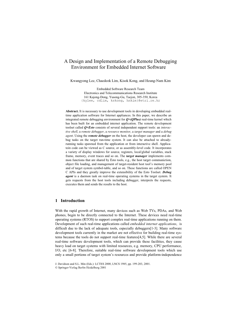 戴维森和S.L. Min(Eds。):LCTES 2000,LNCS 1985,pp。199-203,2001.copy;Springer-Verlag Berlin Heidelberg 2001