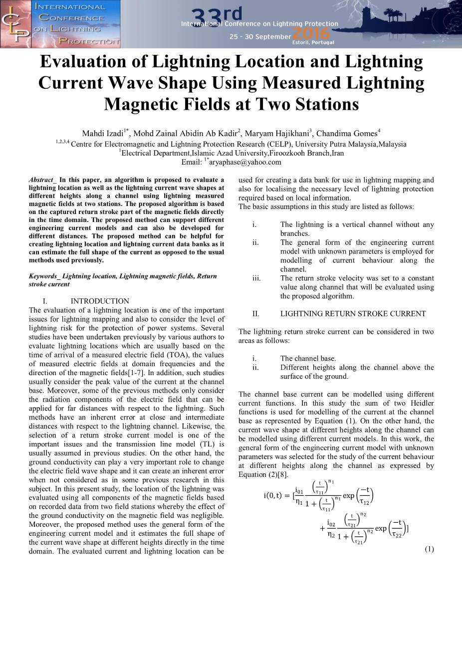 [2] D. Li, M. Azadifar, F. Rachidi, M. Rubinstein, G. Diendorfer, K. Sheshyekani, et al., 'Analysis of Lightning Electromagnetic Field Propagation inMountainous Terrain and its Effects on ToA-Based Lightning Location Systems,' Journal of Geophysical Research: Atmospheres, 2016.