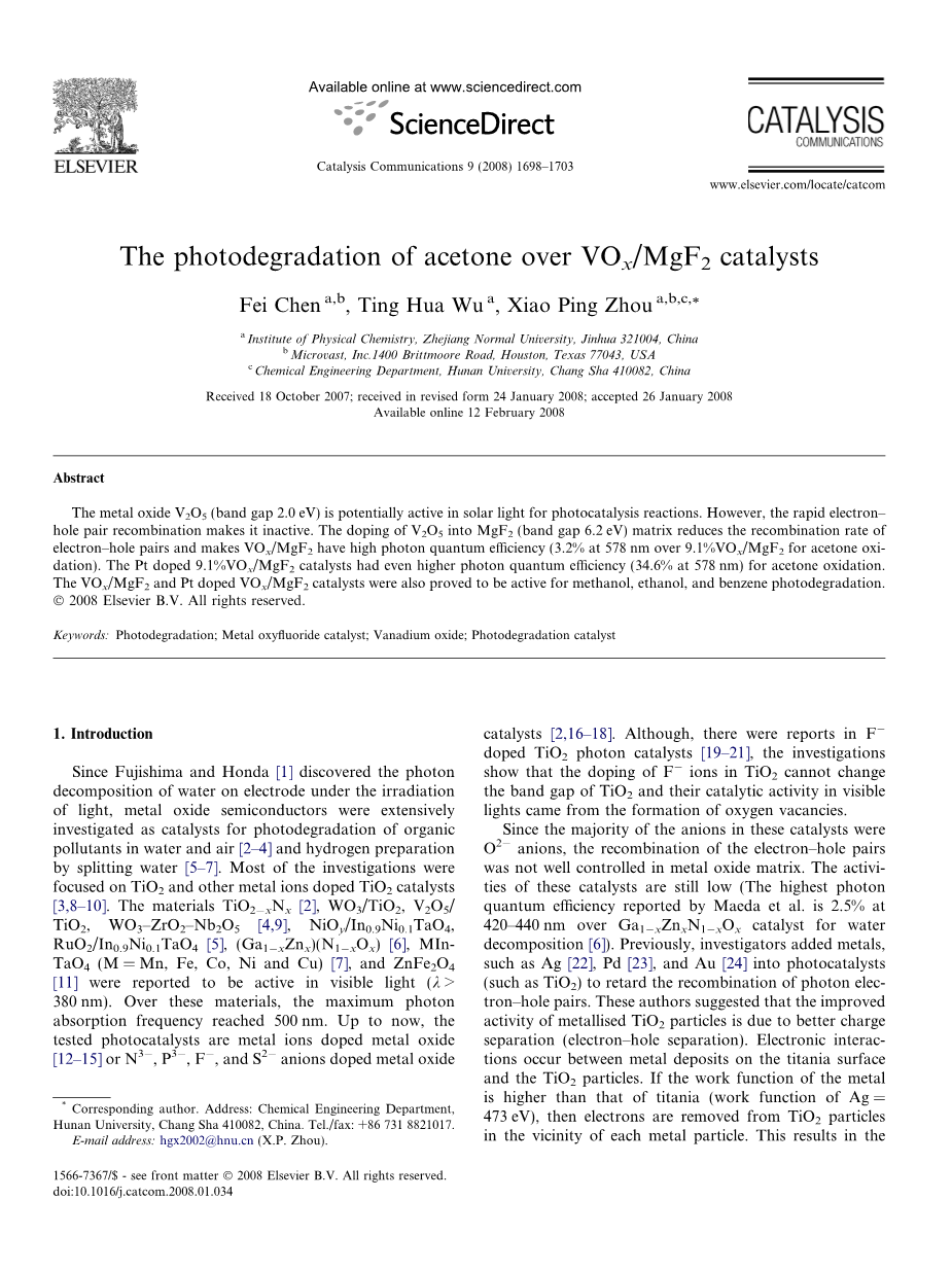 关键词:光降解;金属氟氧化物催化剂;氧化钒;光降解催化剂