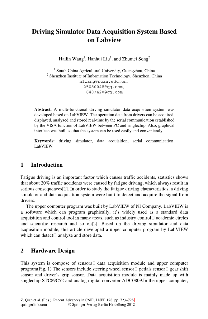 关键词:驾驶模拟器,数据采集,串行通信,LabVIEW