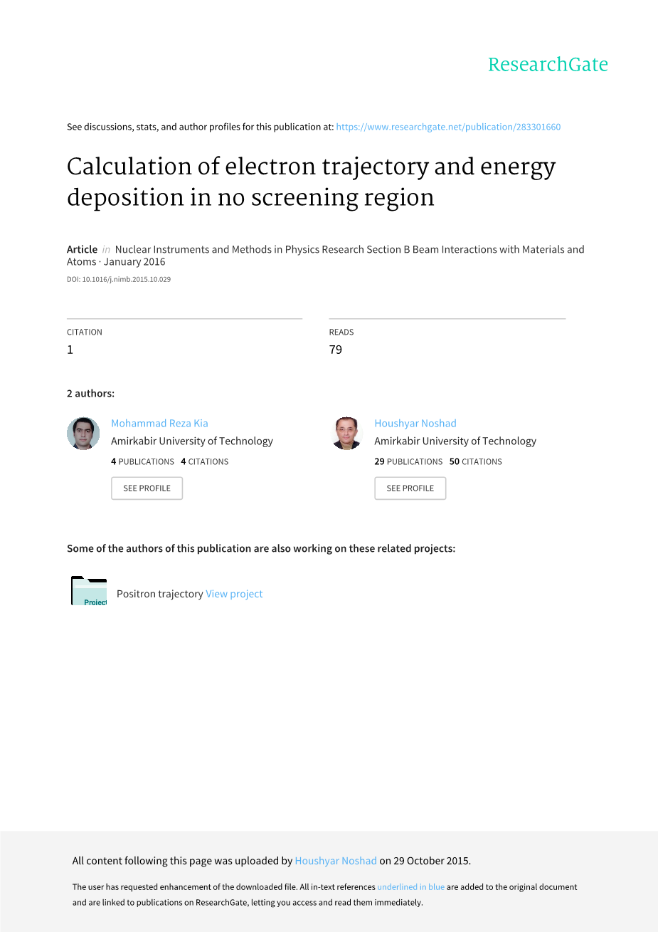 物质中带电粒子轨迹的计算在电子在靶和剂量沉积中的放射生物效应的研究中是特别重要的。许多作者研究了发射电子的放射生物学作用[1-4]。由冲击电子引起的原子的电离理论由Llovet等人综述[5]。各种理论模型可用于计算总截面,如Khare模型和Kim-Rudd,Variens和Grizinski和Bousis及其同事的液态水模型[6-10]。从目标发射的电子数量在无筛选区域内增加,其中外部电子对原子电位的筛选对bre致辐射的概率密度函数(PDF)的影响可以忽略[11]。根据托马斯 - 费米原子对于Yukawa电位的半径,没有筛选区域的电子能量约为lt;70Z 1 = 3,其中Z表示目标的原子序数[12]。电子轨迹起源于bre致辐射和与原子电子的非弹性碰撞以及来自核的弹性散射。 Landau [13]和Vavilov [14]对非弹性碰撞能量损失的PDF进行了计算。在多重散射中,可以考虑Moliere系列来调查偏差的带电粒子[15]。因此,用于计算电子和正电子的一阶Born近似中的非弹性散射的相对光学数据模型由Fernan-dez Varea等人提出[16]。在以前的工作中,通过Moliere和Landau PDF的分析随机抽样计算了各种材料中质子的运动[17]。如果电子能量大于几个电子伏特,则辐射对电子的能量损失很重要[18]。 Bethe和Heitler计算出bre致辐射的差分截面[12]。然而,Koch和Motz [19]将库仑校正添加到bre致辐射差分截面上。 Mathews考虑了bre致肺发射和非弹性碰撞,研究入射能量gt; 15MeV的能量电子束的能量损失分布[20,21]。在忽略弹性散射的情况下,当物质中的电子深度假定为辐射长度的0.01-0.05倍时,结果与实验数据一致。