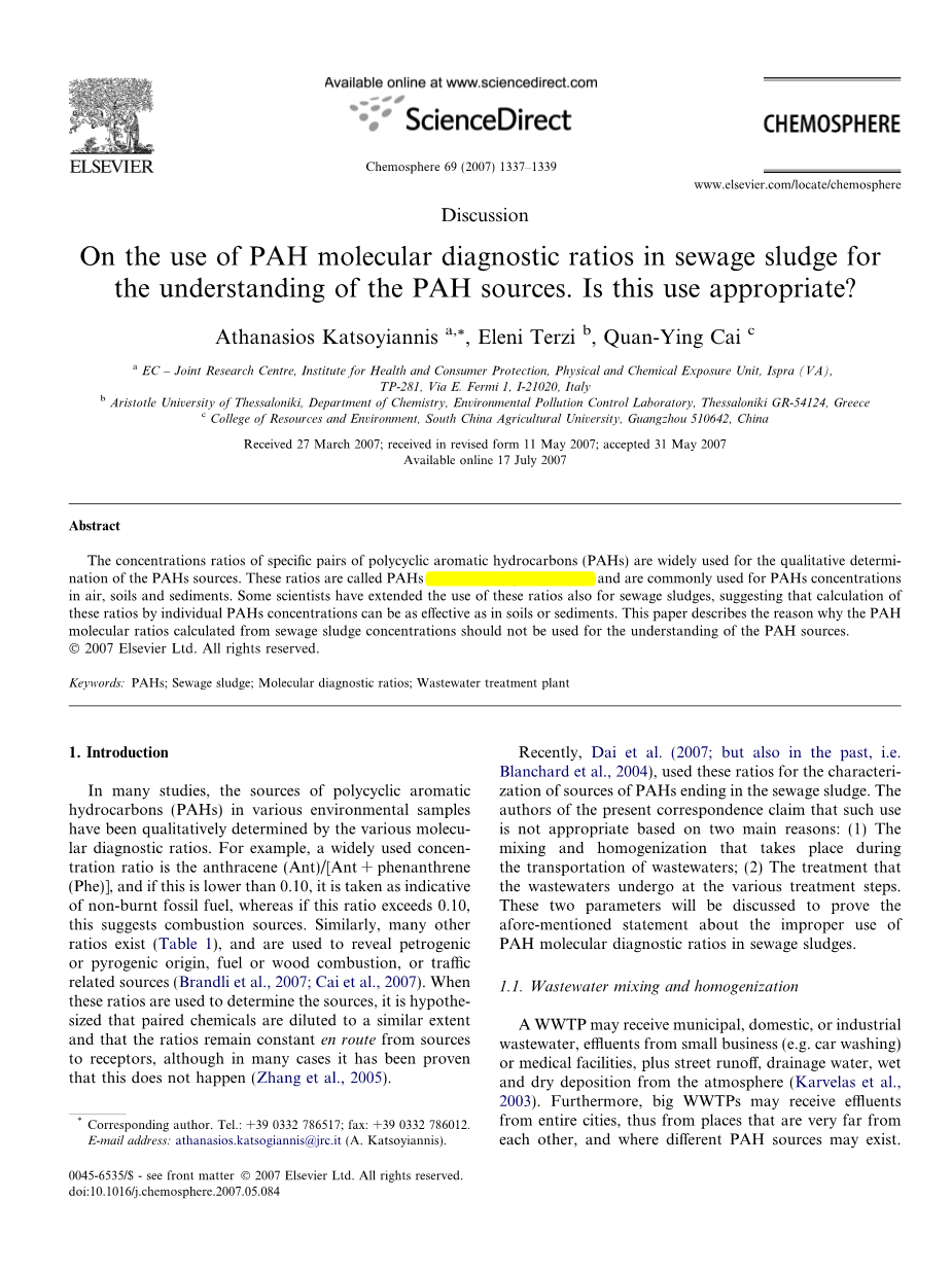 Athanasios Katsoyiannis, Eleni Terzi, Quan-Ying Cai