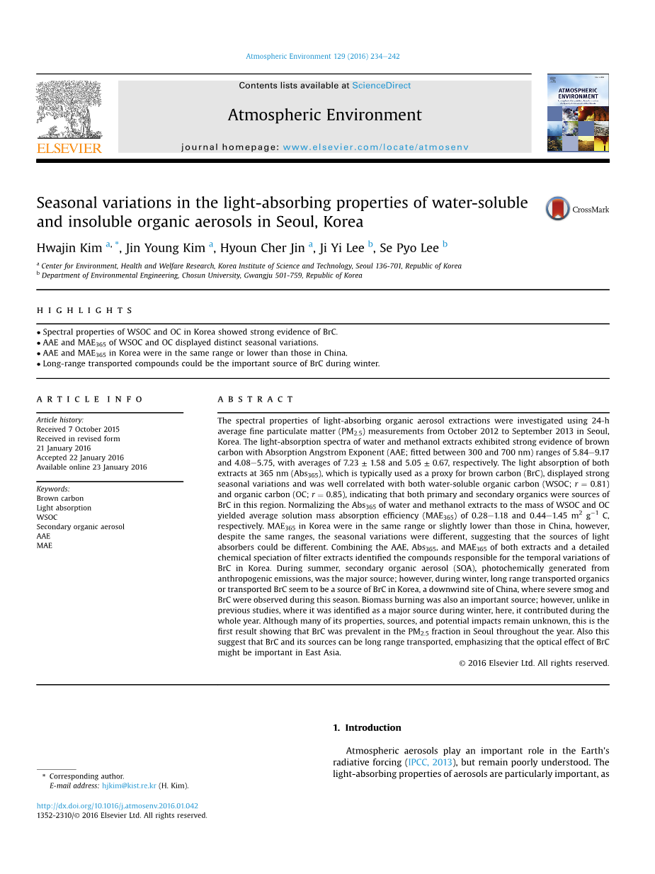 (译:韩国首尔水溶性和非水溶性有机气溶胶的吸光性的季节变化)