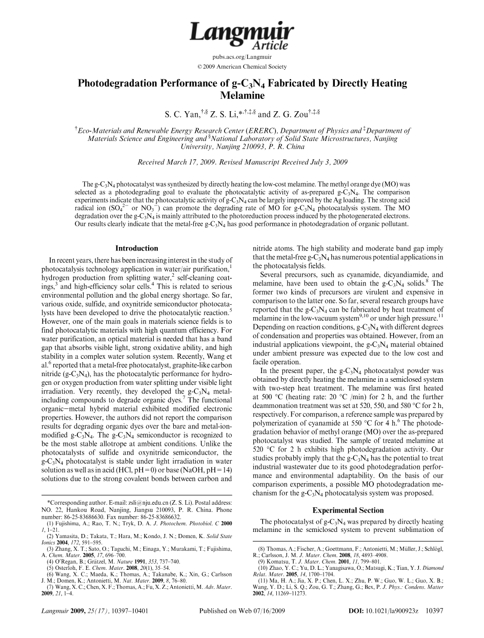 近年来,人们对光催化技术在水/空气净化,分水制氢,自洁涂层和高效太阳能电池等方面的应用的研究越来越感兴趣。这与严重的环境污染和全球能源短缺有关。到目前为止,已经开发出各种氧化物,硫化物和氮氧化物半导体光催化剂来驱动光催化反应。然而,材料科学领域的主要目标之一是寻找具有高量子效率的光催化材料。在水净化方面,需要在复杂的水溶液体系中具有吸收可见光的禁带,强氧化能力和高稳定性的光学材料。最近,王等人研究发现,无金属光催化剂,类石墨氮化碳(g-C3N4)具有在可见光照射下从水分解产生的氢气或氧气的光催化性能。最近,他们研发了含有g- C3N4复合金属的化合物来降解有机染料。功能性有机金属混合材料表现出改进的电子性质。然而,作者并没有说明在裸露和金属离子改性的g-C3N4上降解有机染料的比较结果。g-C3N4半导体被认为是在环境条件下最稳定的同素异形体。与硫化物和氧氮化物半导体的光催化剂不同,由于在碳原子和氮原子之间的强共价键,g-C3N4光催化剂在水溶液以及酸(HCl,pH = 0)或碱(NaOH,pH = 14)溶液中的光照下是稳定的。高稳定性和中等带隙意味着无金属g-C3N4在光催化领域具有许多潜在的应用。