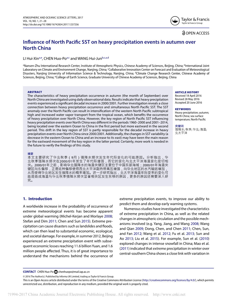 北太平洋海表温度对华北地区秋季强降水事件的影响外文翻译资料