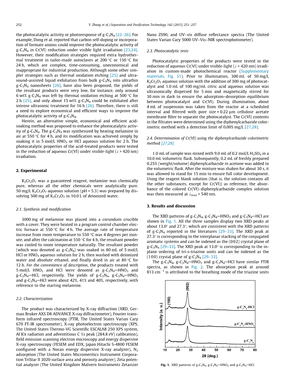 酸处理改善g-C3N4在可见光下还原Cr(Ⅵ)的光催化性能