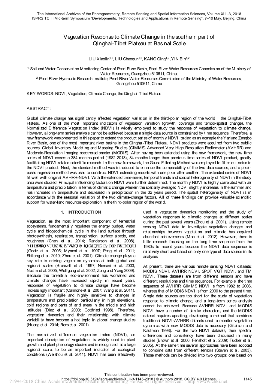 Vegetation Response to Climate Change in the southern part of Qinghai-Tibet Plateau at Basinal Scale