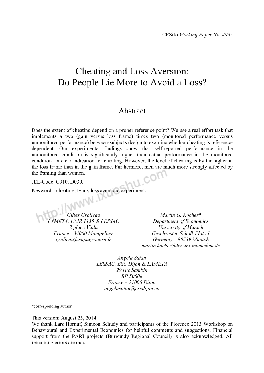 Gilles Grolleau amp; Martin G. Kocher amp; Angela Sutan