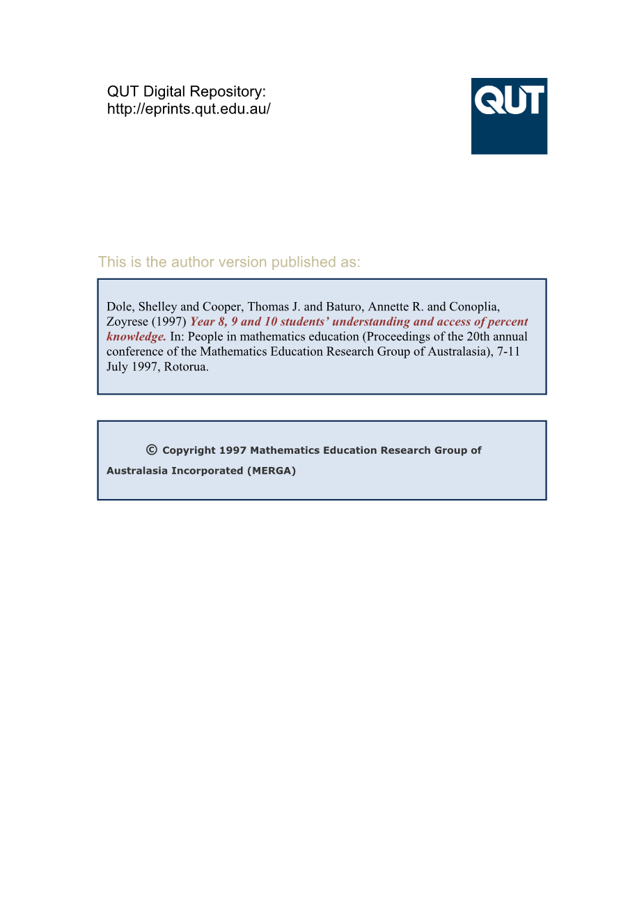 Shelley Dole, Tom J. Cooper, Annette R. Baturo, and Zoyrese Conoplia
