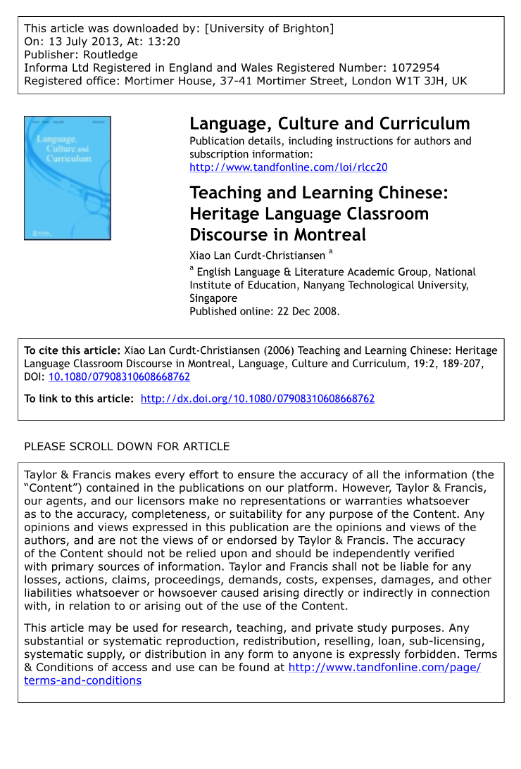 教与学汉语:蒙特利尔传统语言课堂话语外文翻译资料