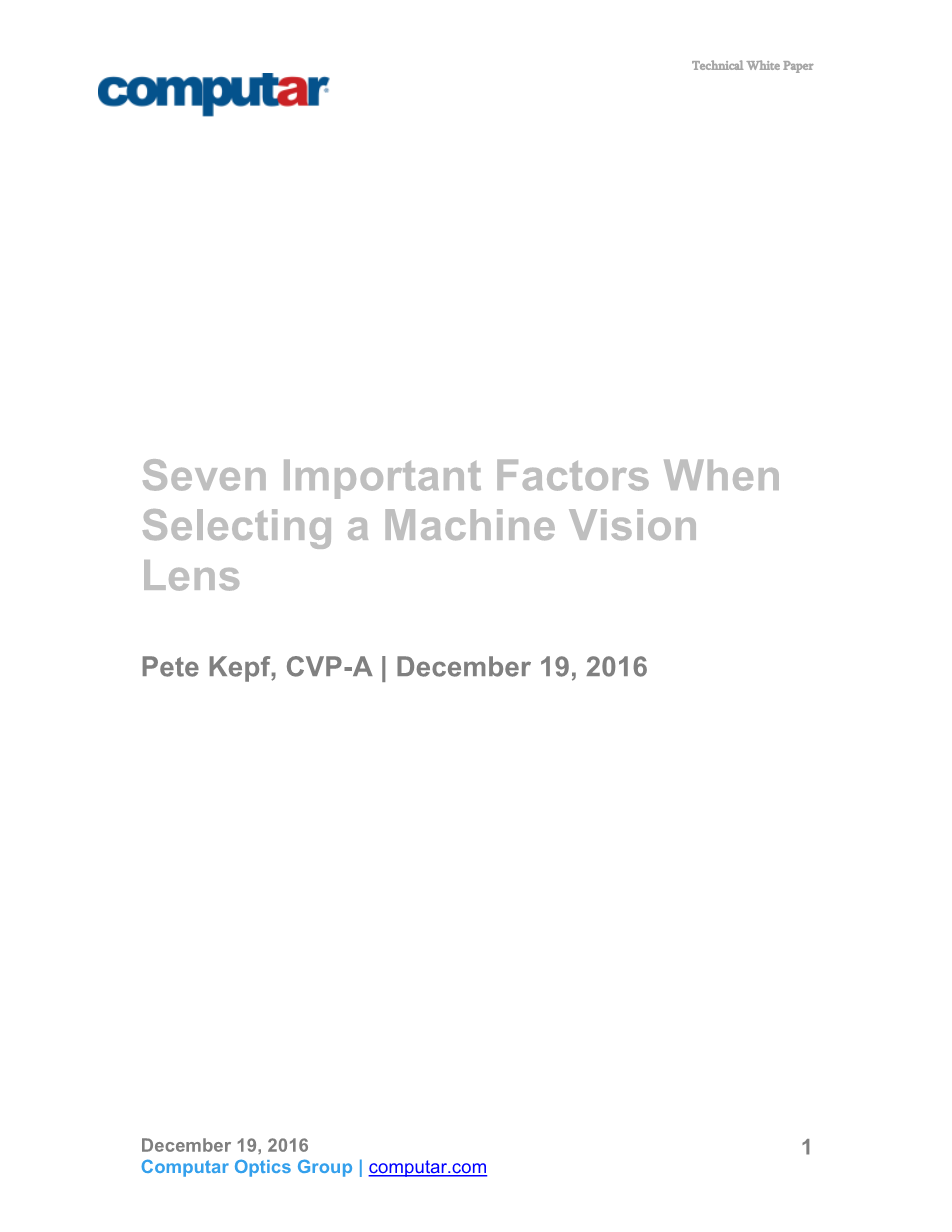 相应技术和可变性,持续推动着机器视觉应用技术从工业领域到商业领域,它的 应用不仅仅是专业人士手中的手动光圈固定焦距镜头。这篇剪短的文章重点介绍 了机器视觉中使用的镜头的一些常见特征和功能。
